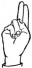 На ћирилици написано ДАНИЈЕЛ МЕЧАНИН састоји се из 14 слова [?]. Исписано ћириличном једноручном азбуком за глувонеме: